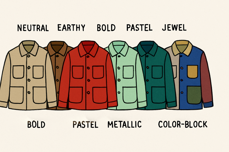 Deep, saturated jewel tones—emerald, royal blue, and amethyst—bring bold sophistication to your jacket game. These colors look particularly elegant in structured chore jackets, elevating casual garments for dressier environments. Jewel tones are ideal for making an impression without resorting to brash brightness.