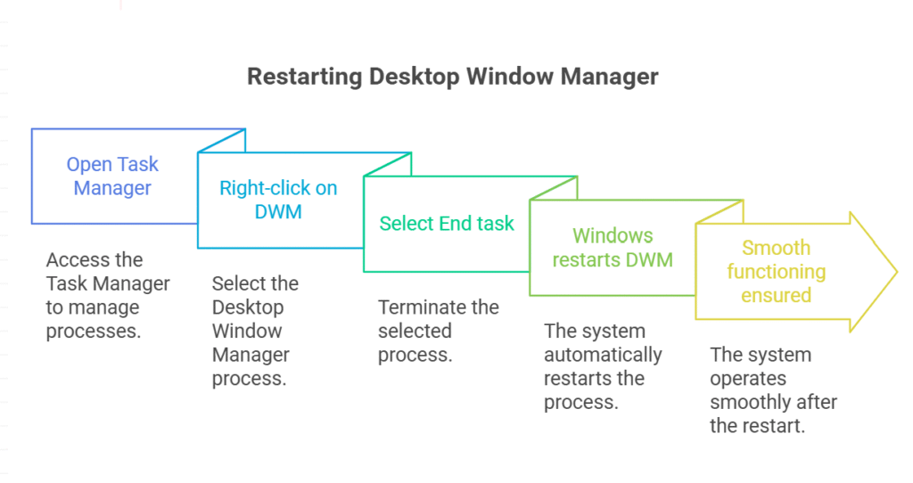 - Right-click “Desktop Window Manager” and select “End task.”