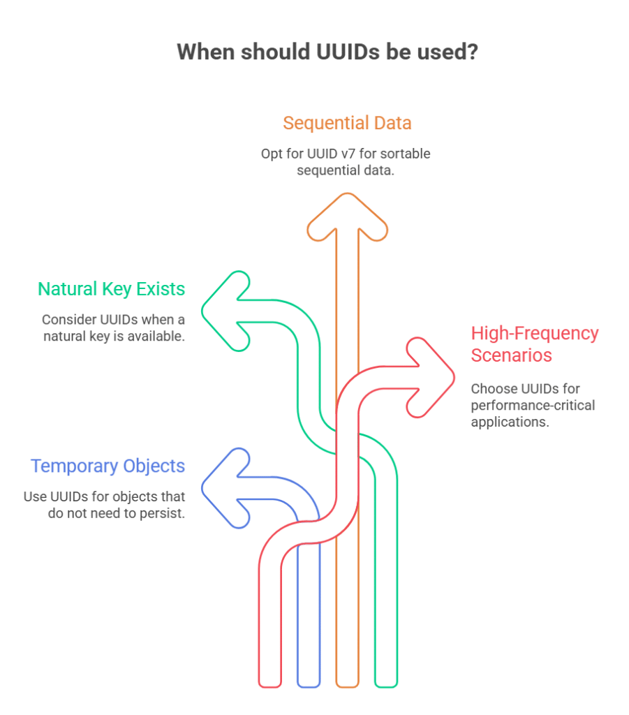 - For sequential data where sortability is critical (consider UUID v7 instead)