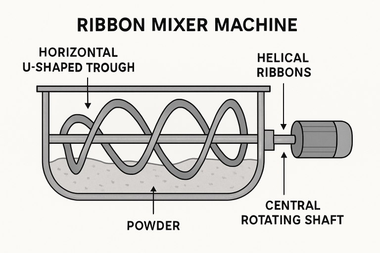 A ribbon mixer is an industrial blending machine designed with a horizontal U-shaped trough and a helical ribbon agitator. As the central shaft turns, the ribbons move material both along the horizontal axis and towards the ends of the trough. This simultaneous axial and radial agitation ensures rapid and thorough mixing of powders, granules, and minor liquid additions, producing a highly homogenous product in each batch.